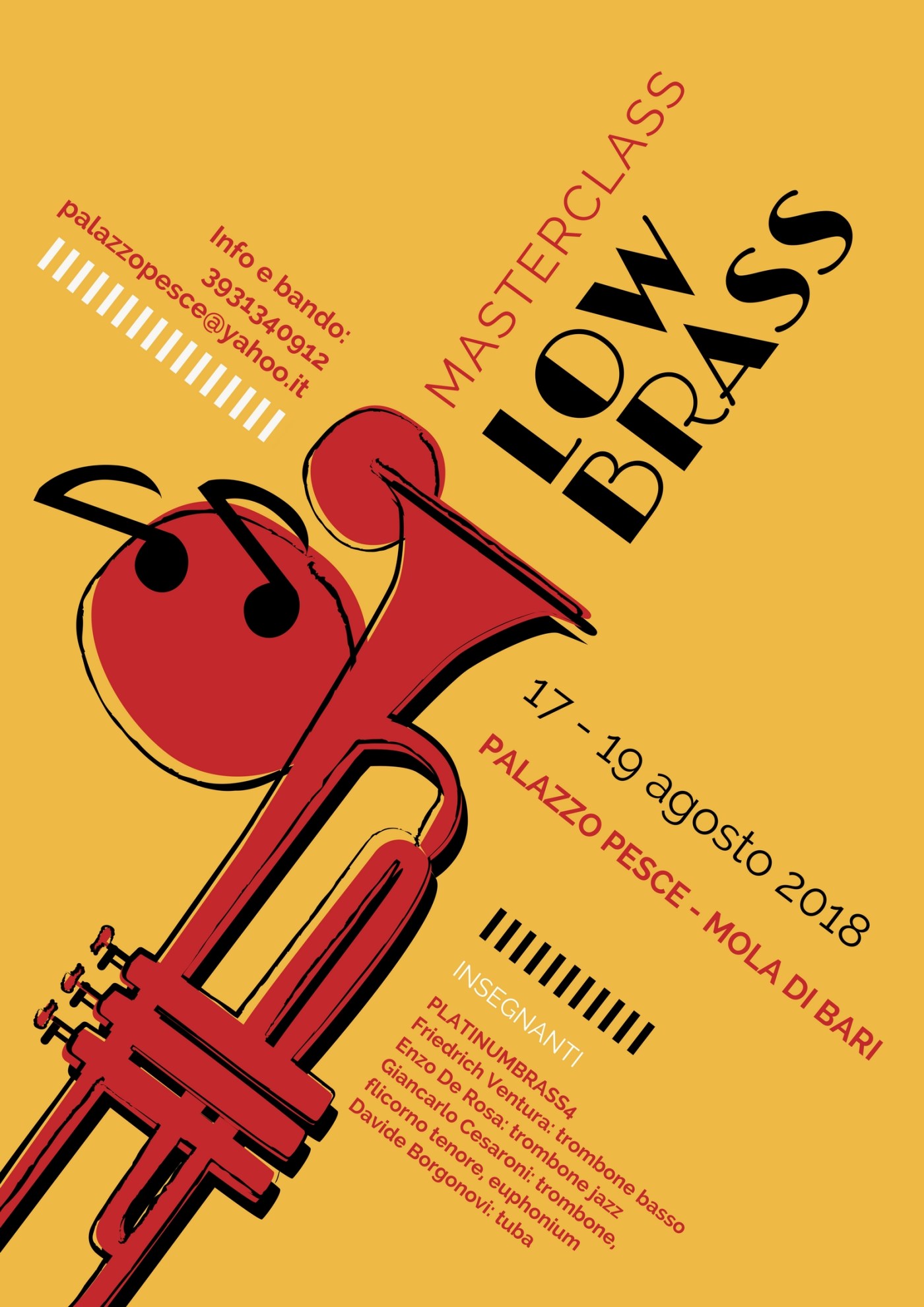 La Puglia è orgogliosa di ospitare un’imperdibile Masterclass di perfezionamento per ottoni. Dal 17 al 19 Agosto 2018 nelle eleganti sale di Palazzo Pesce a Mola di Bari, in collaborazione con l’Associazione Agimus, i quattro brillanti maestri dei Platinumbrass cureranno lezioni di approfondimento sullo studio della respirazione, del suono, della tecnica e del repertorio.