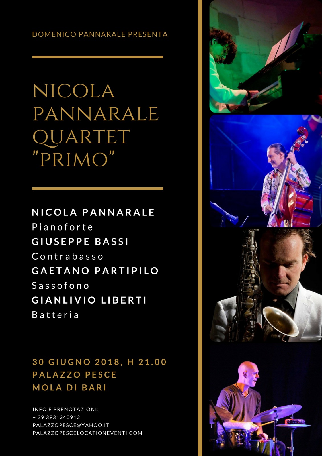 Sabato 30 giugno alle ore 21 il Nicola Pannarale Quartet presenta “Primo”, il nuovo lavoro di Nicola Pannarale. Sul palco di Palazzo Pesce insieme a lui, Giuseppe Bassi al contrabasso, Gaetano Partipilo al sassofono e Gianlivio Liberti alla batteria.