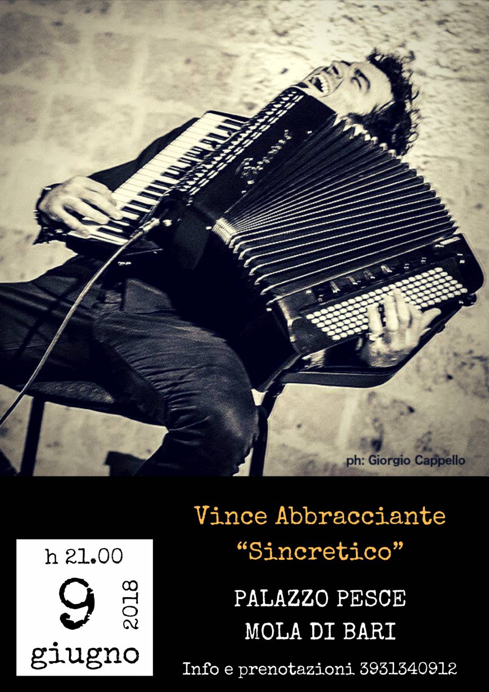 Sabato 9 giugno alle ore 21.00 Palazzo Pesce apre le porte a Sincretico, caleidoscopico e appassionante viaggio con il fisarmonicista Vince Abbracciante.