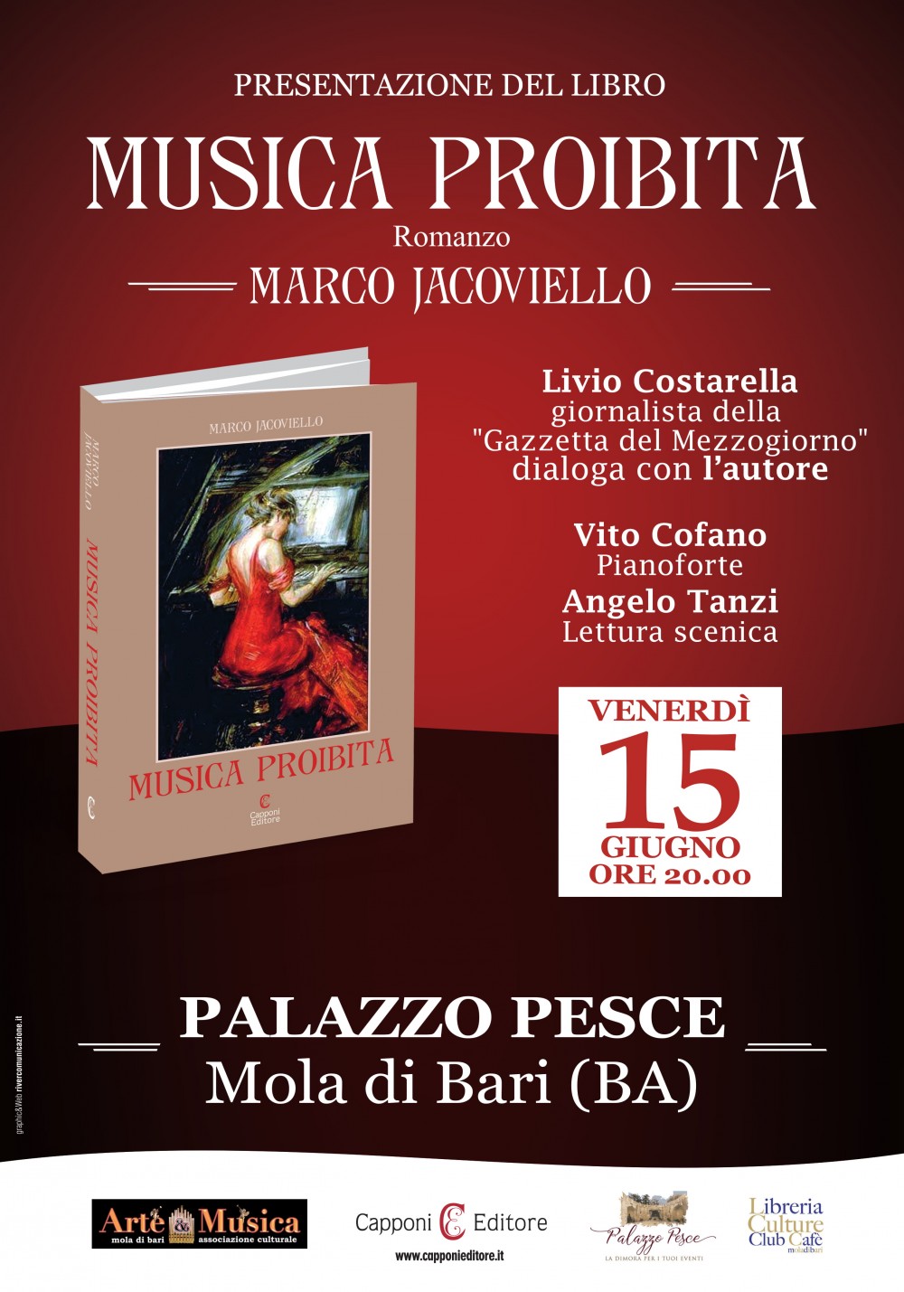 Venerdì 15 giugno alle ore 20.00 la Sala Etrusca di Palazzo Pesce diventa il salotto letterario in cui il giornalista Livio Costarella dialogherà con Marco Jacoviello, autore di Musica proibita (Capponi Editore). A impreziosire la serata il pianoforte di Vito Cofano e le letture sceniche di Angelo Tanzi.