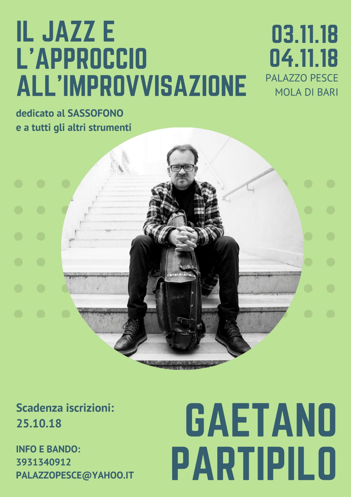 Sabato 3 e domenica 4 novembre 2018 Palazzo Pesce apre le porte a Gaetano Partipilo e alla sua Masterclass in Sassofono e Improvvisazione jazz.