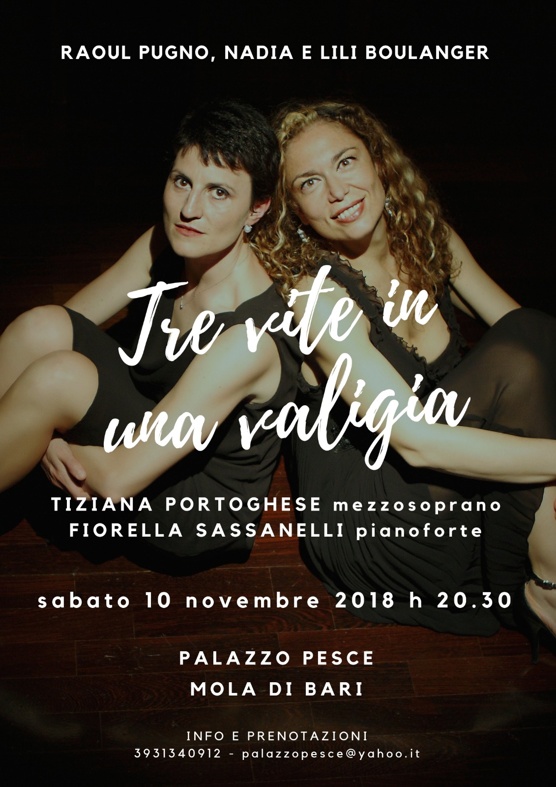 Sabato 10 novembre 2018 alle ore 20.30 a Palazzo Pesce rivivono le “Tre vite in una valigia: Raoul Pugno, Nadia e Lili Boulanger” con il mezzosoprano Tiziana Portoghese e la pianista Fiorella Sassanelli.