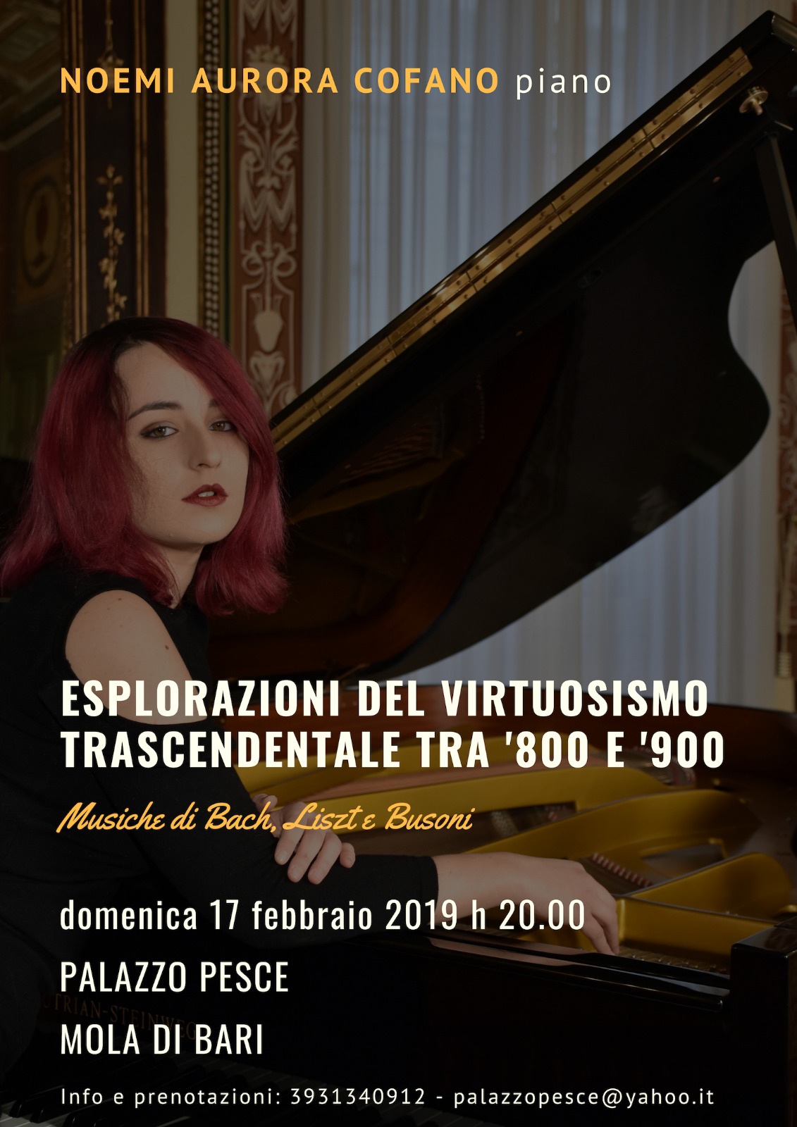 Domenica 17 febbraio 2019 alle ore 20.00 Palazzo Pesce esplora “Il virtuosismo trascendentale tra ’800 e ’900” insieme alla pianista Noemi Aurora Cofano.