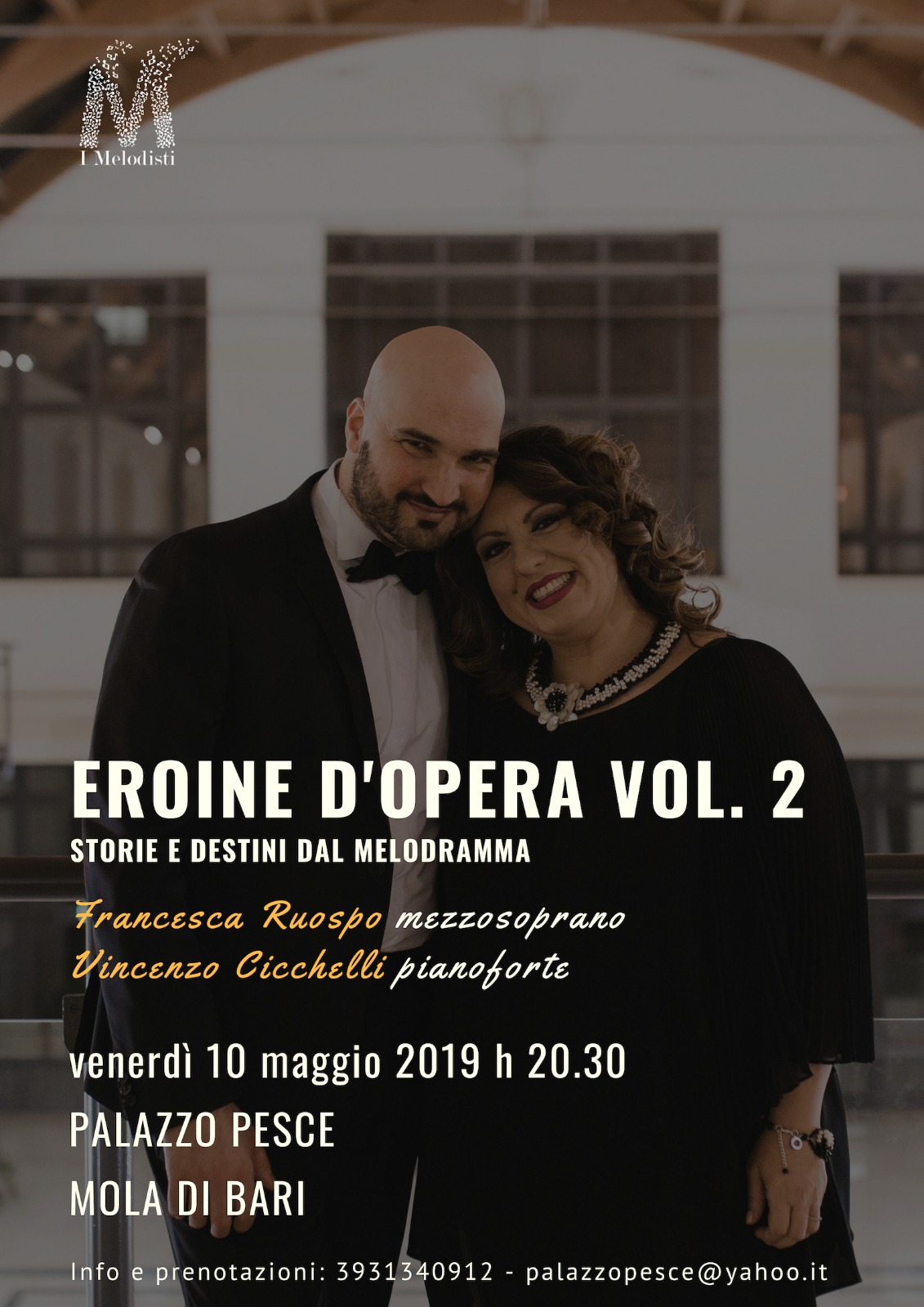 Francesca Ruospo, che si è formata giovanissima presso l’Accademia del Teatro alla Scala e vanta un’attività teatrale e concertistica in tutto il mondo, interpreterà con la sua voce sontuosa e opulenta i vari personaggi, con la complicità di Vincenzo Cicchelli, che da quasi venti anni dedica le sue mani all’accompagnamento del canto al pianoforte, e guiderà il pubblico alla scoperta di trame avvincenti e vicende intricate.