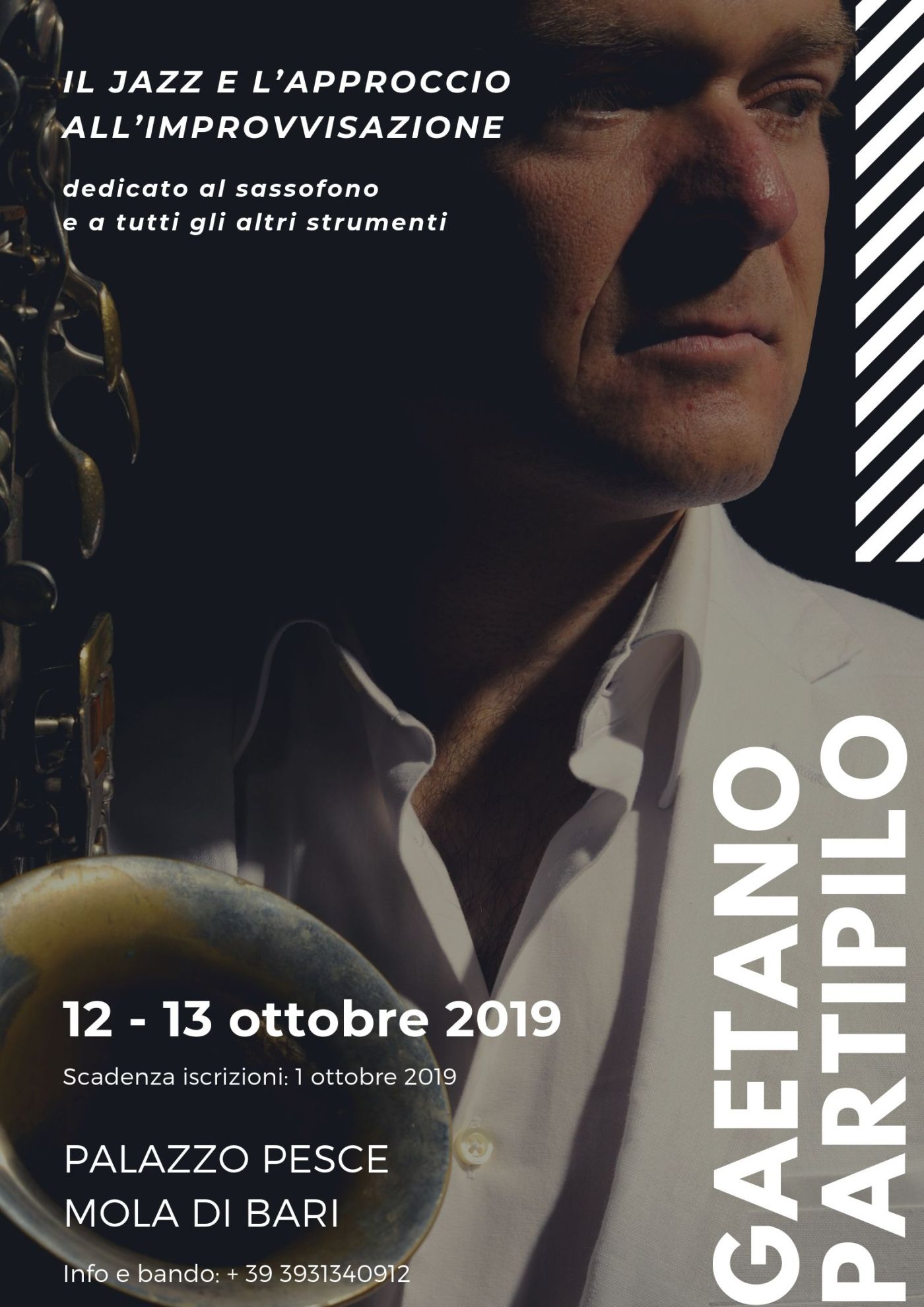 Sabato 12 e domenica 13 ottobre 2019 Palazzo Pesce apre le porte a Gaetano Partipilo e alla sua Masterclass in Sassofono e Improvvisazione jazz.
