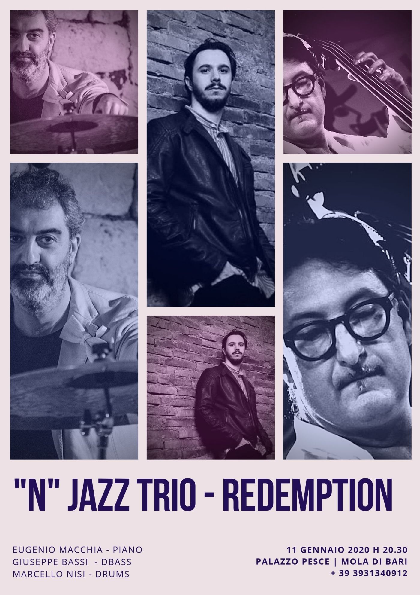 Un concerto in Puglia che attinge dalla lezione indimenticabile delle icone sacre di tradizione jazzistica per poi riproporla con piglio contemporaneo e personale. Un percorso sonoro fatto anche di composizioni originali, che sarà scandito dalla sensibilità profonda, dall’energia espressiva intensa e dalla ricerca costante dell’interplay e di un sound corposo e riconoscibile dell’N Jazz Trio. E di Eugenio Macchia, fra i più fulgidi pianisti jazz italiani della sua generazione, vincitore del Luca Flores Piano Competition, Miglior Pianista all’International Jimmy Woode Award, Primo Classificato al Premio Internazionale Massimo Urbani e collaborazioni con artisti di caratura internazionale come Joe Locke, Edmar Castaneda e Fabrizio Bosso, di Giuseppe Bassi, contrabbassista fra i più richiesti e apprezzati degli ultimi vent’anni, perdutamente innamorato della tradizione jazzistica, ma assai interessato anche alle correnti moderne del jazz e collaborazioni al fianco di numerosi musicisti blasonati in ambito mondiale come John Hicks, Joe Magnarelli e Stefano Bollani, e di Marcello Nisi, batterista sempre immerso in una profonda ricerca timbrica e ritmica, stile riconoscibile e una carriera accanto ai jazzisti più rinomati al mondo come Sonny Fortune, Miroslav Vitous, Antonio Faraò e Paolo Fresu.