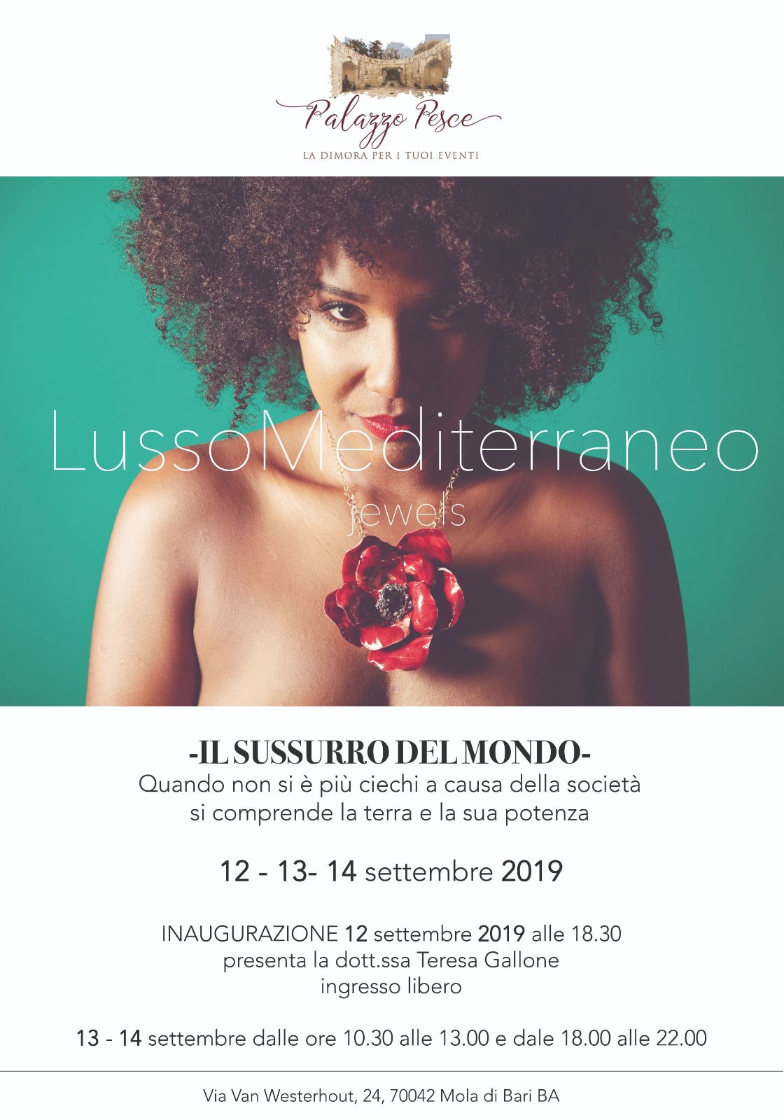 Solo 3 giorni per scegliere il gioiello più adatto a te: dal 12 al 14 settembre nella galleria di Palazzo Pesce a Mola di Bari l’esposizione dei gioielli originali di Lussomediterraneo jewels.