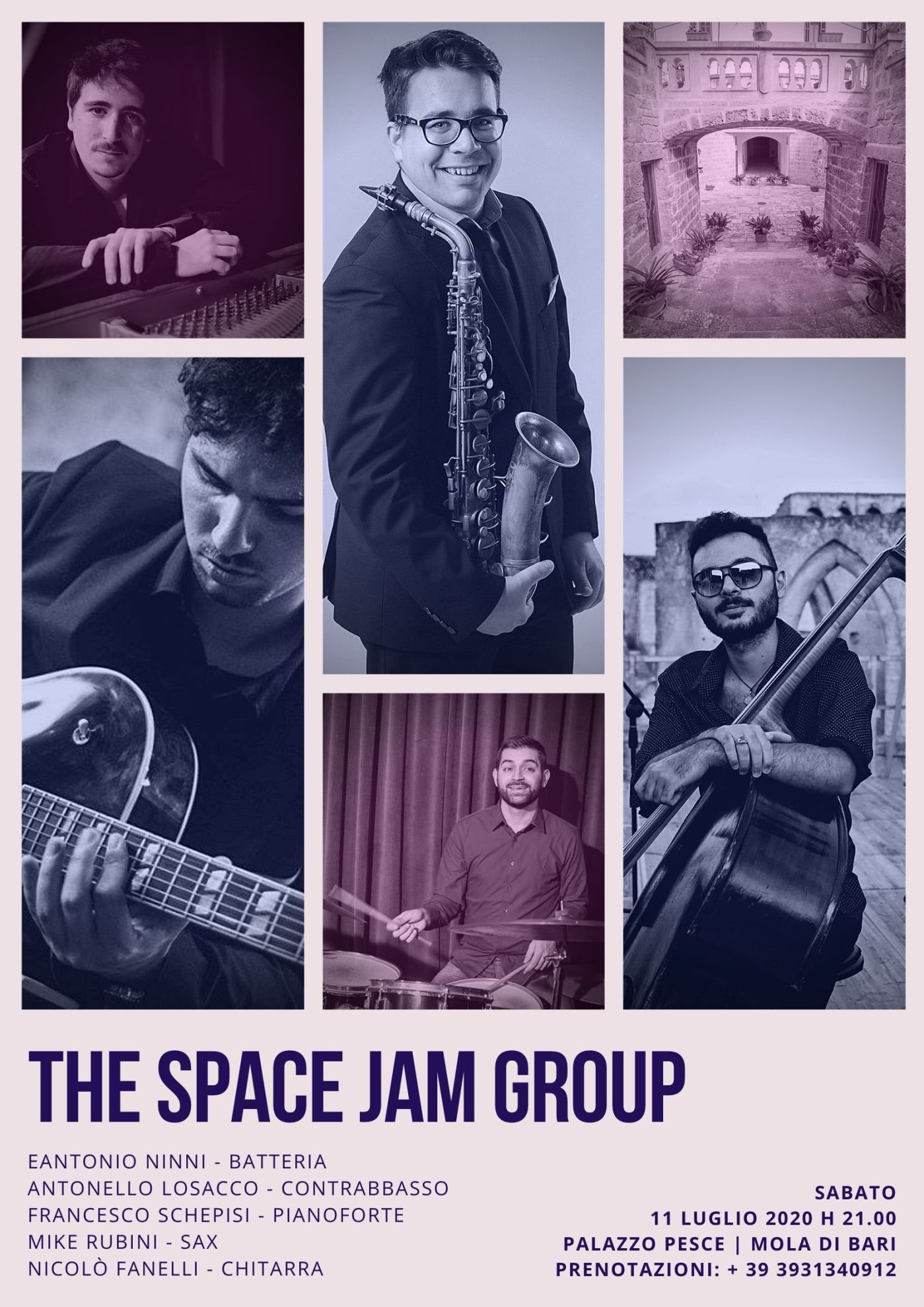 Sabato 11 luglio 2020 alle ore 21.00 Palazzo Pesce dà appuntamento a The Space Jam Group, quintetto formato da Antonio Ninni alla batteria, Antonello Losacco al contrabbasso, Francesco Schepisi al pianoforte, Mike Rubini al sax e Nicolò Fanelli alla chitarra.