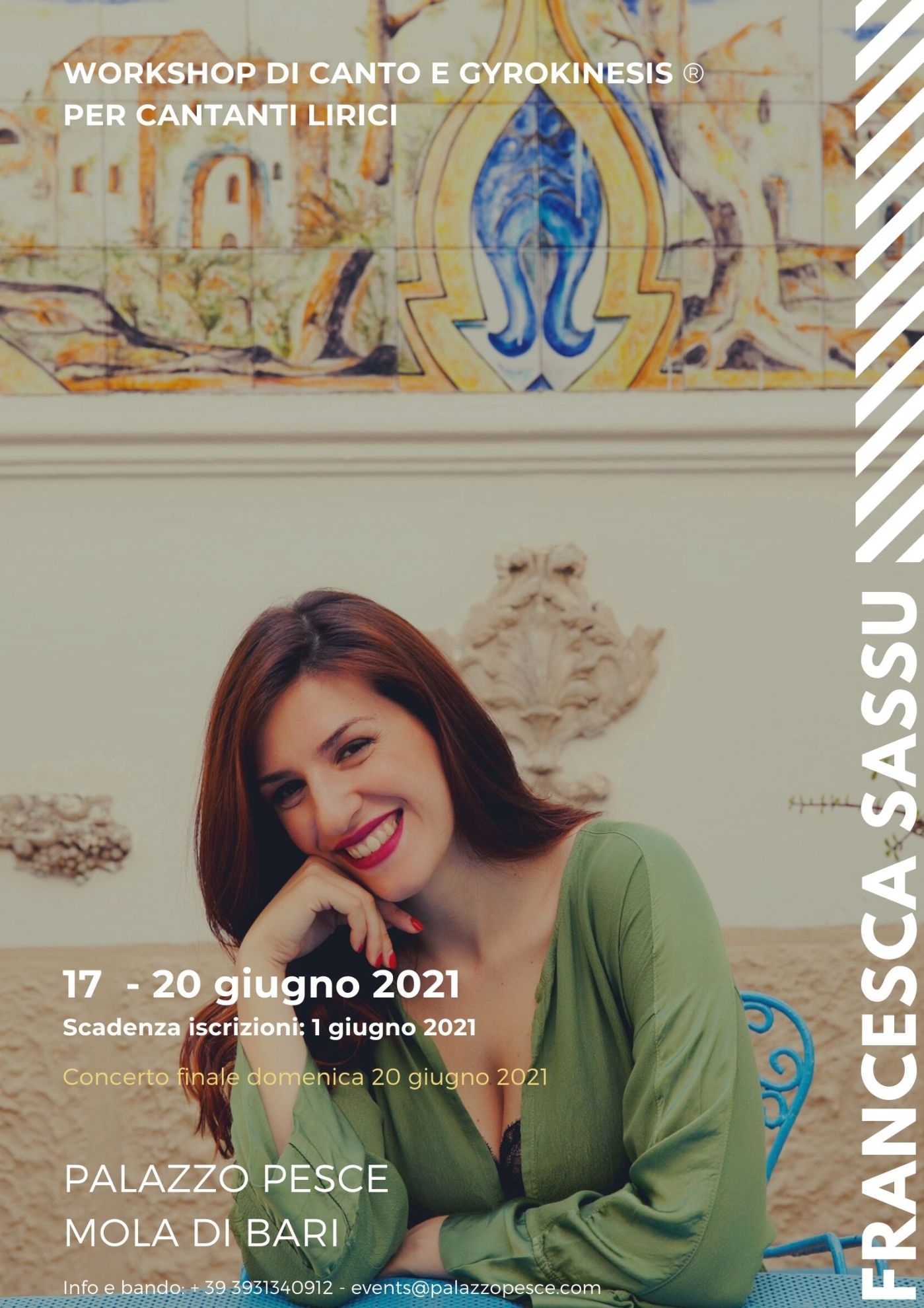 Da giovedì 17 a domenica 20 giugno 2021 Palazzo Pesce ospita fra le sue mura, il workshop di canto e GYROKINESIS® tenuto dal soprano Francesca Sassu.