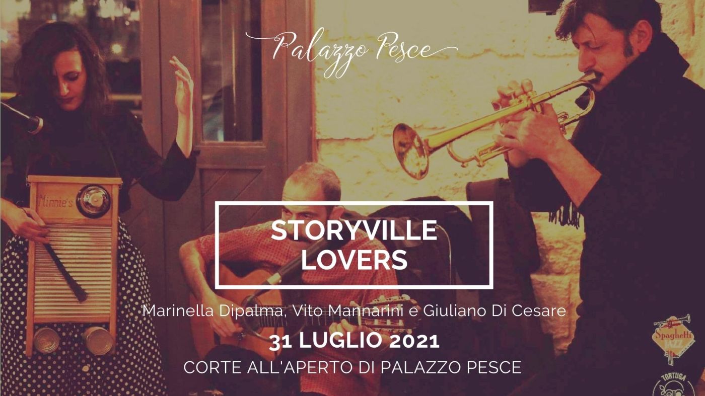 Sabato 31 luglio 2021 alle ore 20.45 Palazzo Pesce prepara le scarpette da ballo per lo spettacolo “Storyville Lovers” con Marinella Dipalma alla voce e washboard, Vito Mannarini alla chitarra e Giuliano Di Cesare alla tromba e flicorno.