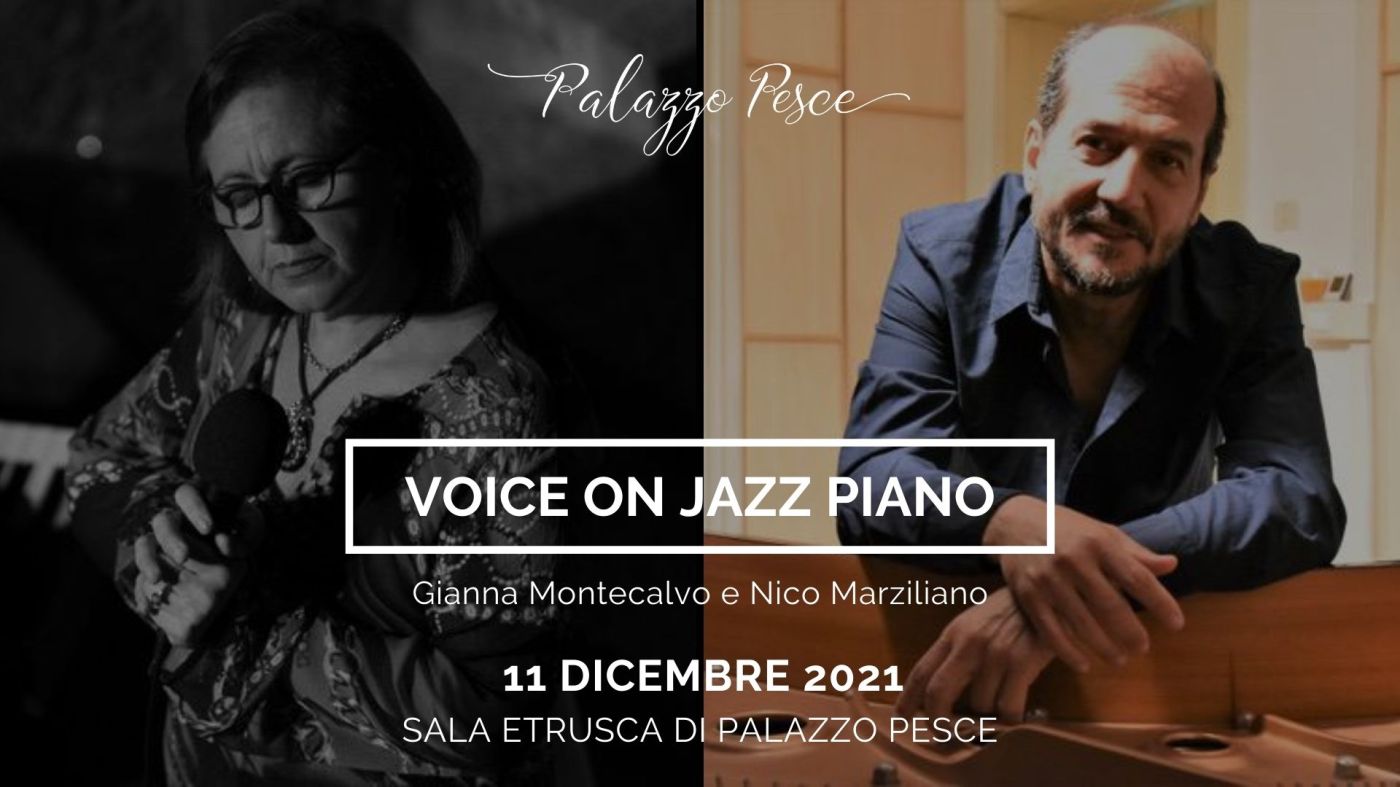 Sabato 11 dicembre 2021 alle ore 20.00 (I set) e 21.30 (II set) nella Sala Etrusca di Palazzo Pesce i riflettori sono puntati su “Voice on jazz piano” con la voce di Gianna Montecalvo e il pianoforte di Nico Marziliano.