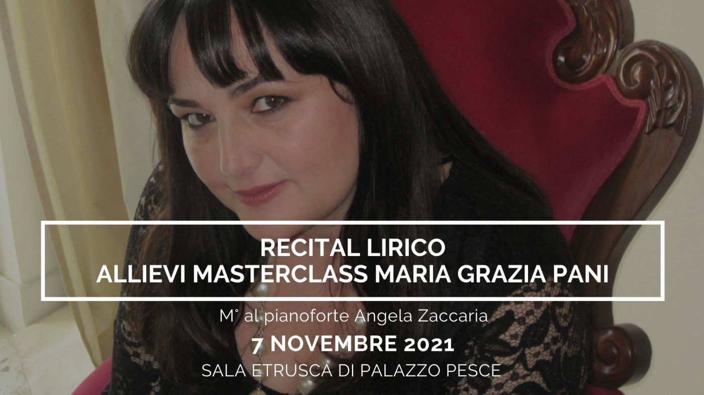 Domenica 7 novembre 2021 alle ore 19.00 Palazzo Pesce accoglie il concerto finale della Masterclass per cantanti lirici tenuta da Maria Grazia Pani, cantante e didatta riconosciuta a livello internazionale.