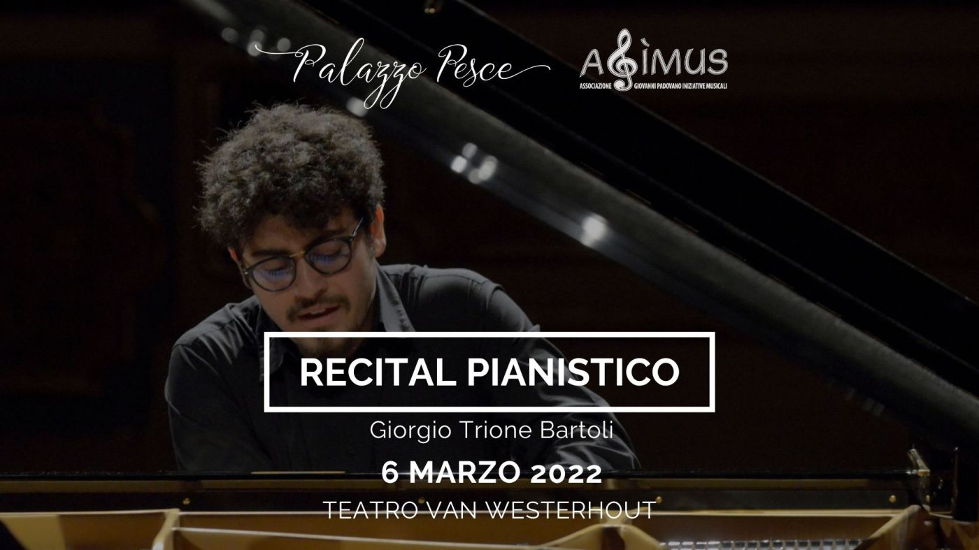 Domenica 6 marzo 2022 alle ore 18.30 presso il Teatro Van Westerhout di Mola di Bari, Palazzo Pesce, in collaborazione con Agìmus, presenta il recital pianistico di Giorgio Trione Bartoli.