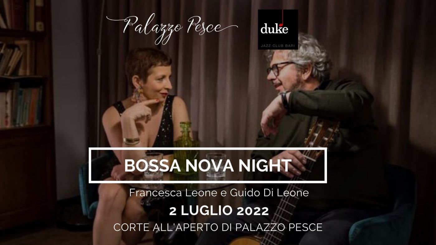 Sabato 2 luglio 2022 alle ore 21.30 la corte all’aperto di Palazzo Pesce si apre a “Bossa Nova Night” insieme alla voce di Francesca Leone e alla chitarra di Guido Di Leone.