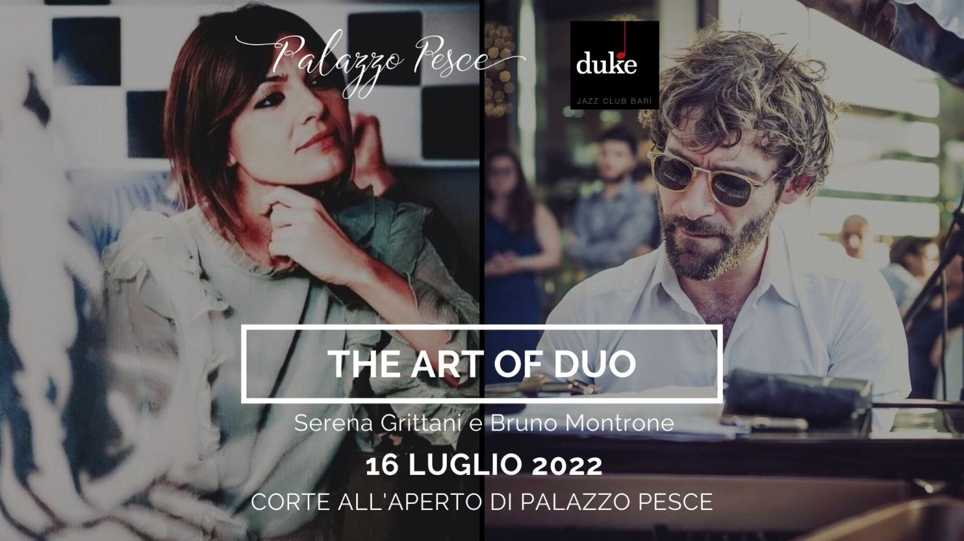 Sabato 16 luglio 2022 alle ore 21.30 nella corte all’aperto di Palazzo Pesce è di scena “The Art of Duo” insieme alla voce di Serena Grittani e al pianoforte di Bruno Montrone.