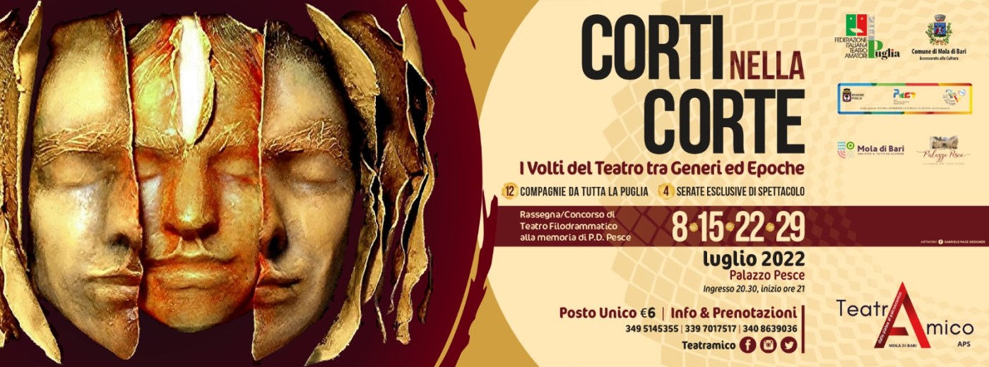 una Rassegna/Concorso di Teatro Filodrammatico alla Memoria di Piero Delfino PESCE presso Palazzo Pesce – Mola di Bari nei giorni 8 – 15 – 22 – 29 luglio 2022 ore 21.