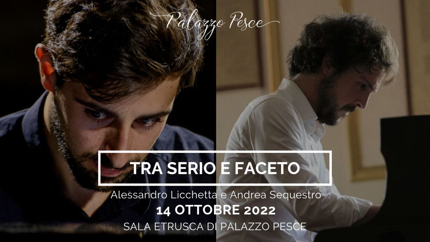 Venerdì 14 ottobre 2022 alle ore 20.30 la Sala Etrusca di Palazzo Pesce a Mola di Bari si mette all’ascolto di “Tra serio e faceto”, il recital cameristico dei pianisti Alessandro Licchetta e Andrea Sequestro.