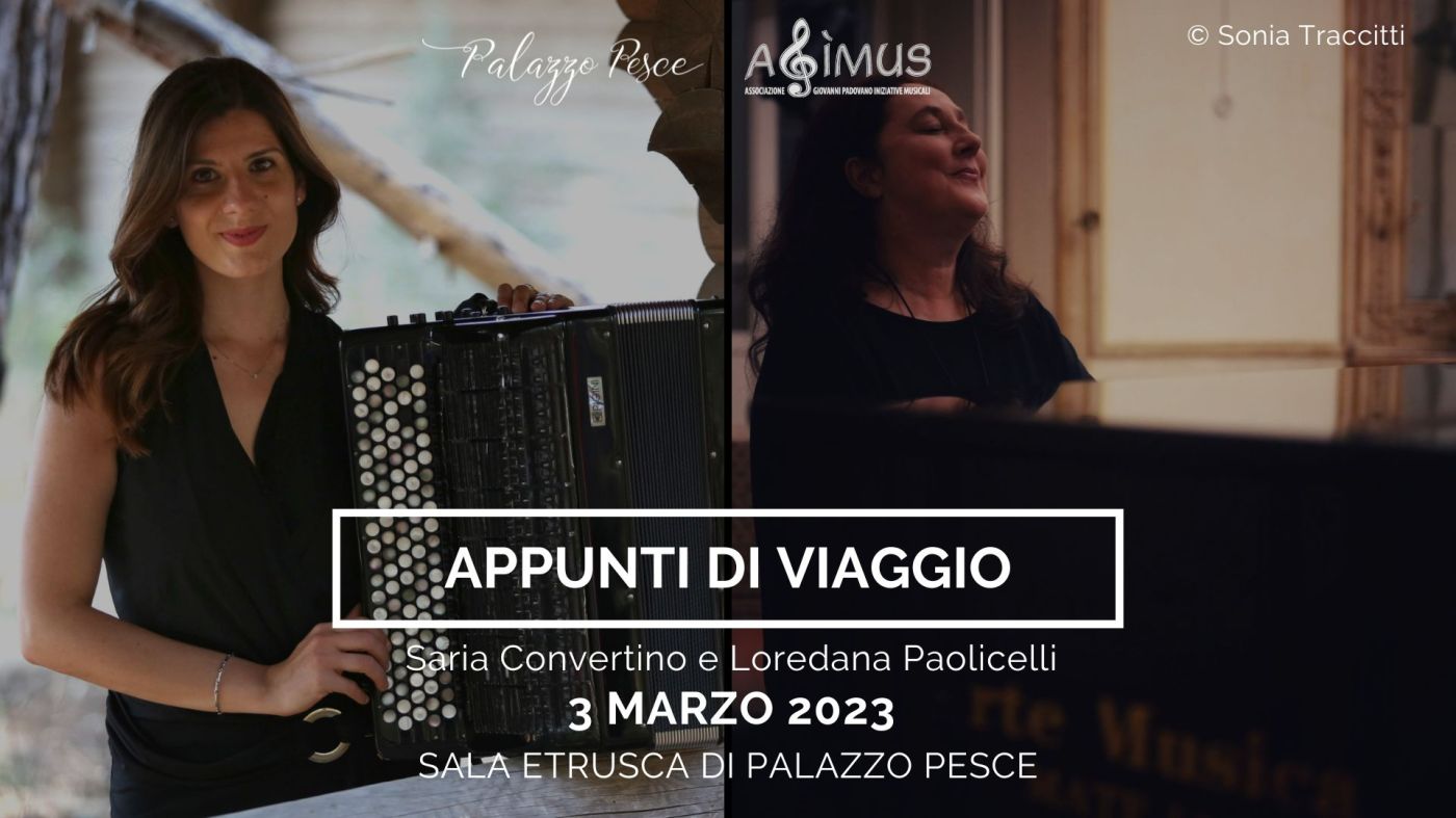 Venerdì 3 marzo 2023 alle ore 20.30 Palazzo Pesce si prepara agli “Appunti di Viaggio. Bayan e Pianoforte” insieme alla fisarmonica bayan di Saria Convertino e al pianoforte di Loredana Paolicelli.