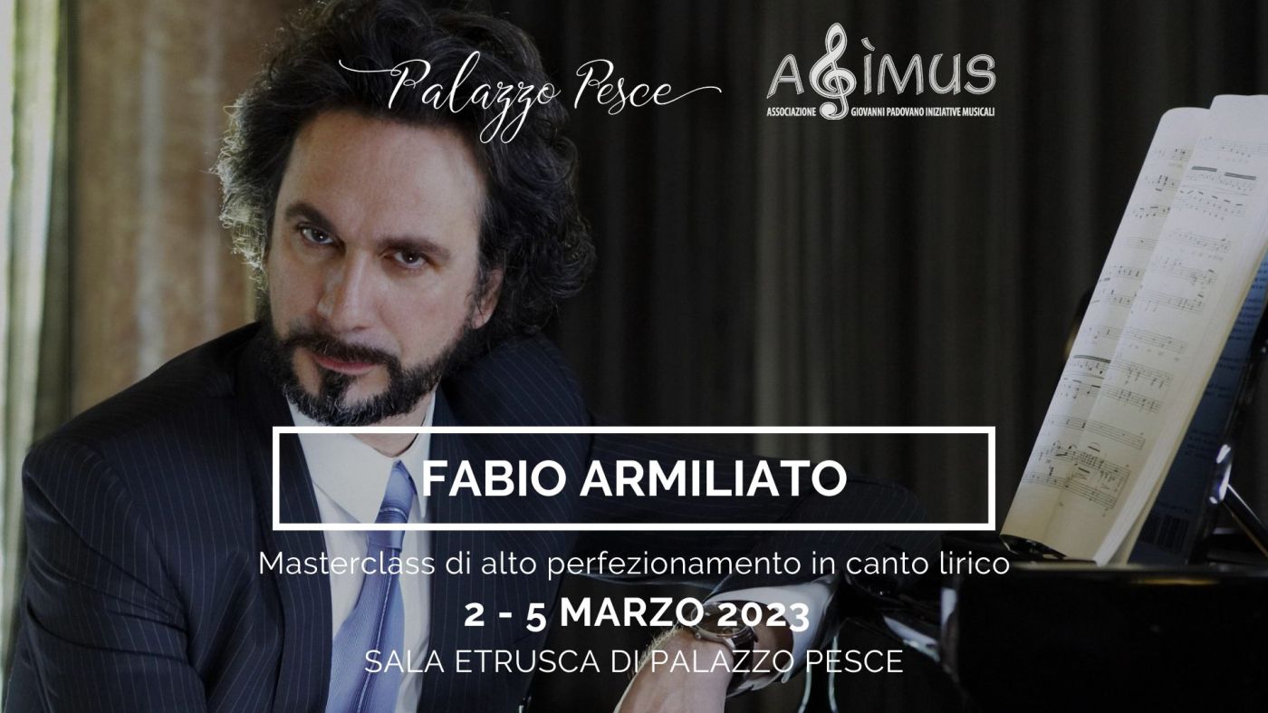 Da giovedì 2 a domenica 5 marzo 2023 Palazzo Pesce, in collaborazione con l’Agìmus, è lieto di ospitare la Masterclass di Alto perfezionamento in Canto lirico tenuta dal tenore Fabio Armiliato, da oltre tre decenni uno dei cantanti più importanti della scena lirica internazionale.