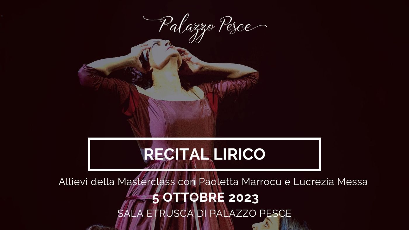 Giovedì 5 ottobre 2023 alle ore 20.30 a Palazzo Pesce si ascolteranno le note “Del Recitar Cantando”, il Recital lirico della masterclass di alto perfezionamento in canto lirico tenuta da Paoletta Marrocu, soprano che ha calcato i maggiori teatri del mondo, da La Scala di Milano a La Fenice di Venezia, passando per Wiener Staatsoper, Deutsche Oper di Berlino, Bayerische Staatsoper di Monaco, Gran Teatre del Liceu di Barcellona, Teatro Real di Madrid, Washington, San Diego, Shanghai, Seoul e Tokyo Opera.
