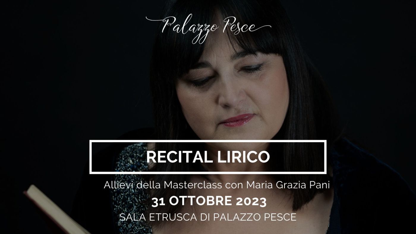 Martedì 31 ottobre 2023 alle ore 20.00 Palazzo Pesce accoglie il concerto finale della Masterclass per cantanti lirici tenuta da Maria Grazia Pani, cantante e didatta riconosciuta a livello internazionale.