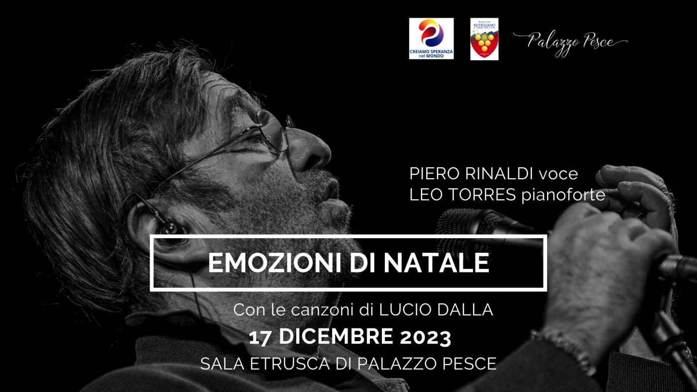 Il Rotary Club di Rutigliano e Terre dell’Uva, in collaborazione con il Palazzo Pesce di Mola di Bari, e con la partecipazione del R.C. Bari Alto e Terra dei Peuceti, nella ricorrenza delle festività natalizie, ha organizzato una serata per DOMENICA 17 DICEMBRE alle 19,30 da trascorrere insieme di “Emozioni per il Natale con le canzoni di Lucio Dalla”; allieteranno la serata gli artisti Piero Rinaldi e Leo Torres.