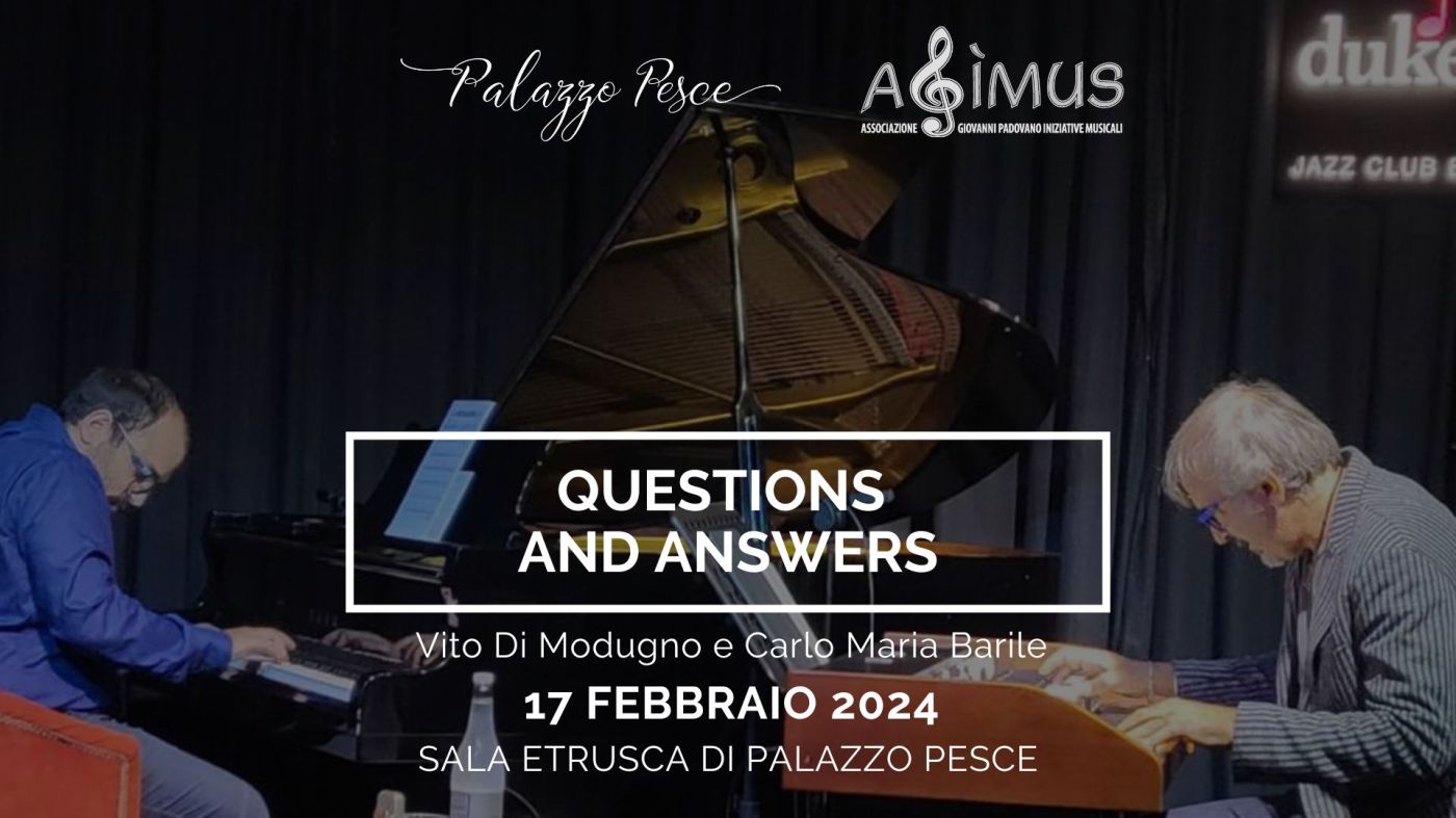 Sabato 17 febbraio 2024 alle ore 21.00 a Palazzo Pesce “Questions and answers” con Vito di Modugno all’hammond e Carlo Maria Barile al pianoforte.