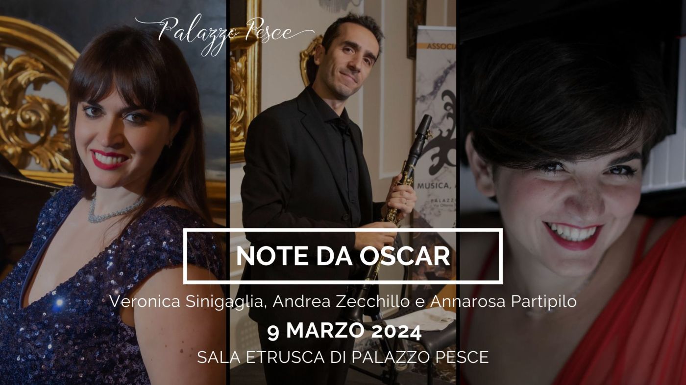 Sabato 9 marzo 2024 ore 21.00 a Palazzo Pesce va in scena “Note da Oscar” con Veronica Sinigaglia alla voce, Andrea Zecchillo al clarinetto e Annarosa Partipilo al pianoforte.