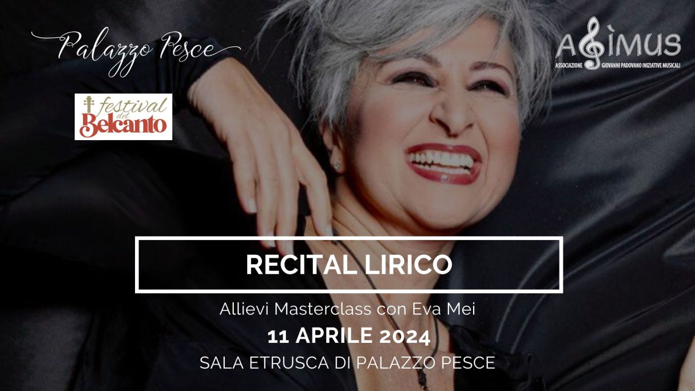 Giovedì 11 aprile 2024 alle ore 20.30 Palazzo Pesce è la cornice del concerto finale della Masterclass per Cantanti lirici tenuta dal soprano Eva Mei, protagonista per oltre tre decenni nei maggiori teatri del mondo sotto la guida di direttori del calibro di Claudio Abbado, Zubin Mehta, Riccardo Muti e Lorin Maazel e docente presso l’Accademia del Maggio Musicale Fiorentino.