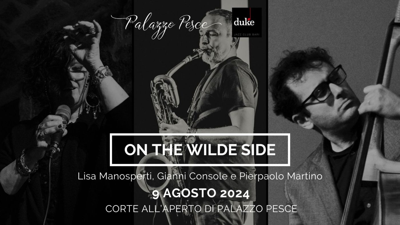 Venerdì 9 agosto 2024 alle ore 21.30 la corte all’aperto di Palazzo Pesce, in collaborazione con il Duke Jazz Club, presenta “On the Wilde Side” con musiche di Lou Reed, David Bowie, Smiths e Depeche Mode insieme alla voce di Lisa Manosperti, al contrabbasso e elettronica di Pierpaolo Martino e al sax ed elettronica di Gianni Console.