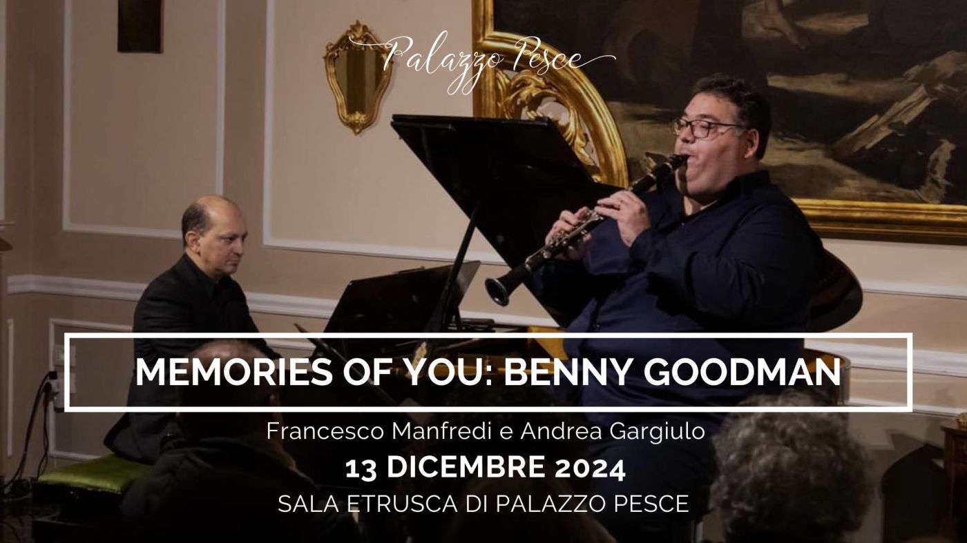 Venerdì 13 dicembre 2024 alle ore 21.00 Palazzo Pesce di Mola di Bari presenta Memories of you: Benny Goodman con Francesco Manfredi al clarinetto e Andrea Gargiulo al pianoforte.