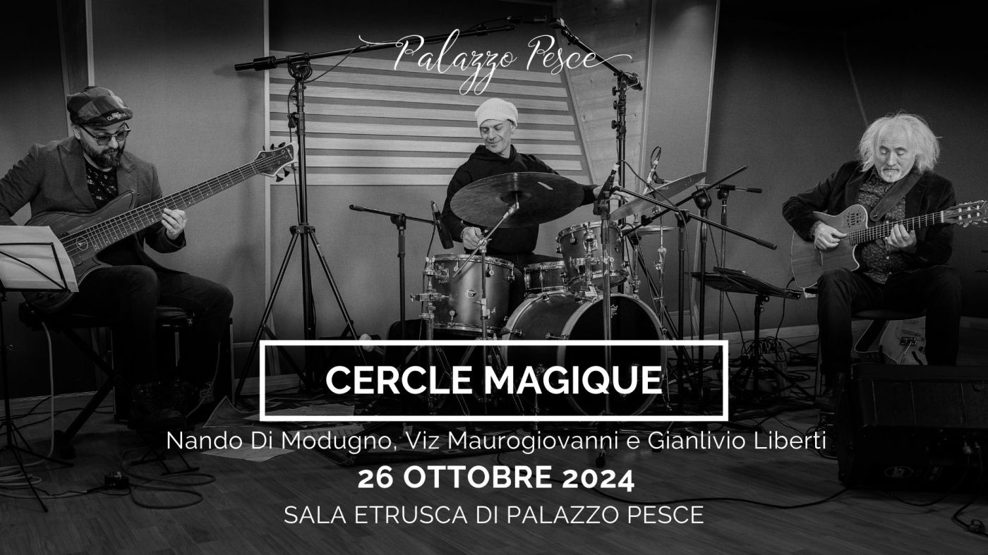 Sabato 26 ottobre 2024 alle ore 21.00 Palazzo Pesce di Mola di Bari presenta “The music from the stars” con il Cercle Magique trio composto dal chitarrista Nando Di Modugno, il batterista Gianlivio Liberti ed il bassista Vincenzo “Viz” Maurogiovanni.