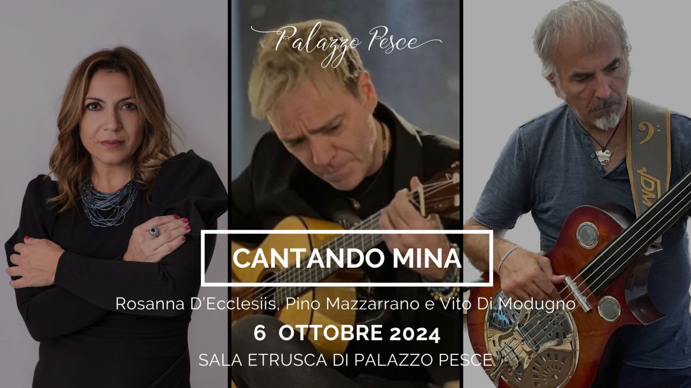 Domenica 6 ottobre 2024 alle ore 20.00 Palazzo Pesce di Mola di Bari si apre a “Cantando Mina” con Rosanna D’Ecclesiis alla voce, Pino Mazzarano alla chitarra e Vito Di Modugno al basso.