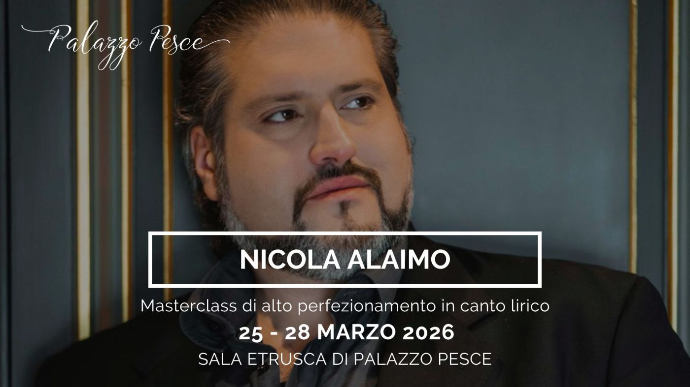 Da mercoledì 25 a sabato 28 marzo 2026 Palazzo Pesce ospita la Masterclass di Alto perfezionamento in Canto lirico con Nicola Alaimo, baritono tra i più apprezzati del panorama musicale internazionale, applaudito sui palcoscenici più prestigiosi del mondo e collaborazioni del calibro di Bruno Campanella, James Levine, Zubin Mehta e Riccardo Muti.