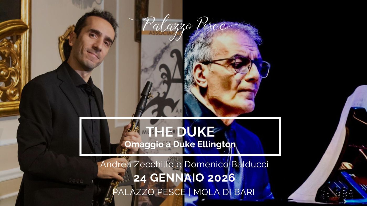 Sabato 24 gennaio 2026 alle ore 21.30 la Sala Etrusca di Palazzo Pesce presenta The Duke Omaggio a Duke Ellington, con Andrea Zecchillo al clarinetto e Domenico Balducci al pianoforte.