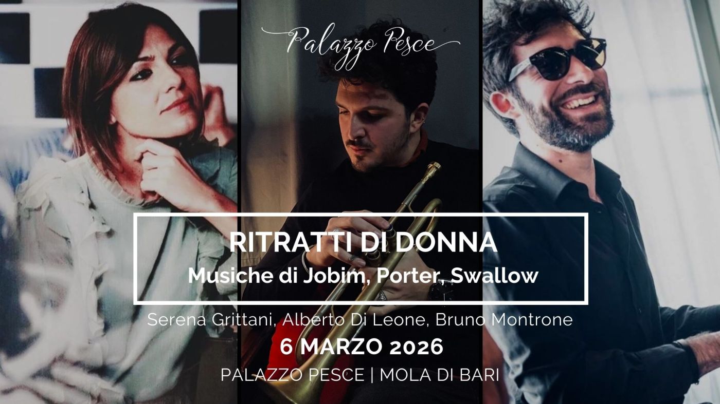 Venerdì 6 marzo 2026 alle ore 21.00, Palazzo Pesce presenta Ritratti di donna Storie di resistenza, passione e libertà – Musiche di Jobim, Porter, Swallow con Serena Grittani voce, Alberto Di Leone tromba e Bruno Montrone pianoforte.
