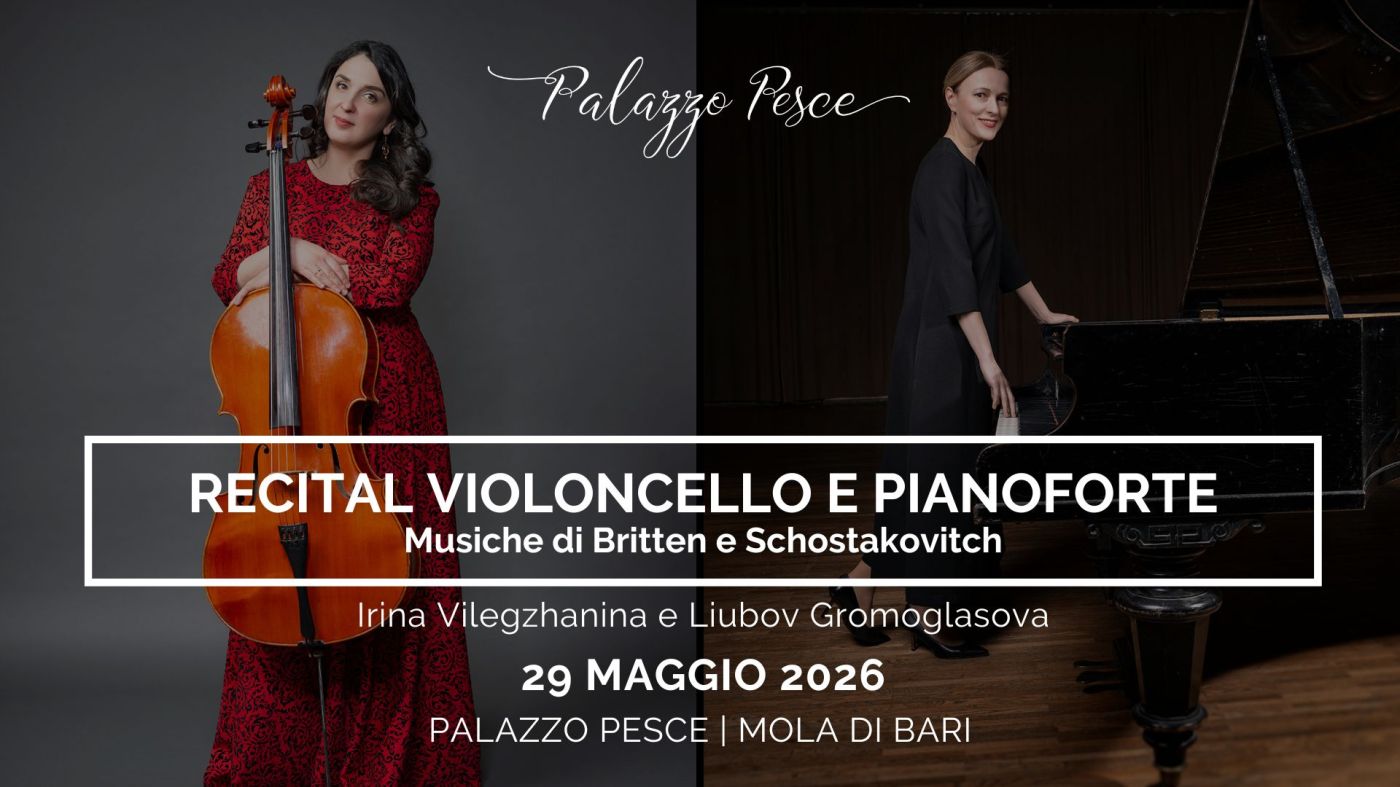 Venerdì 29 maggio 2026 alle ore 20.30 Palazzo Pesce apre le porte della Sala Etrusca al Recital violoncello e pianoforte