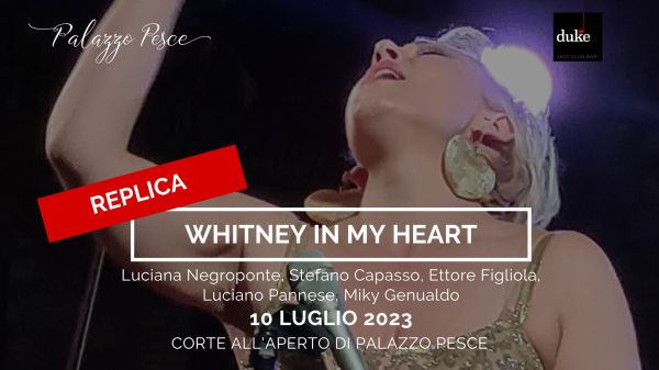 Lunedì 10 luglio 2023 alle ore 21.00 Palazzo Pesce replica nella sua corte all’aperto “Whitney in my heart. Omaggio a Whitney Huston” insieme alla voce Luciana Negroponte, al piano di Stefano Capasso, alla chitarra di Ettore Figliola, al basso di Luciano Pannese e alla batteria di Miky Genualdo. Un concerto in Puglia, in collaborazione con il... Continua a leggere →