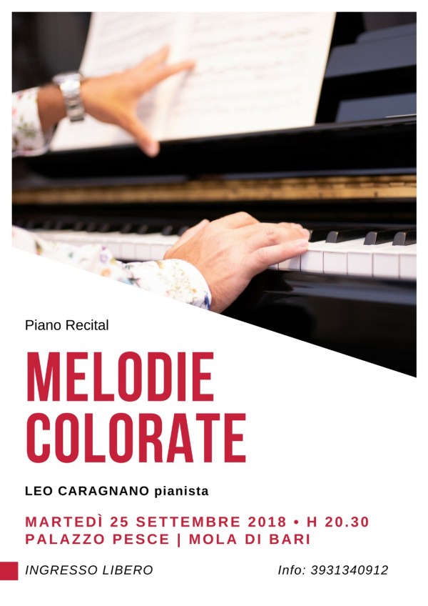 Martedì 25 settembre alle ore 21.00 Palazzo Pesce si tinge dei toni delle “Melodie colorate” di Leo Caragnano. Un concerto in Puglia che vede esibirsi quello che è stato definito il “pianista dei colori”. La travolgente “Lezioni di piano” di Michael Nyman toglierà il fiato, la sospesa “River flows in you” di Yiruma accarezzerà come... Continua a leggere →