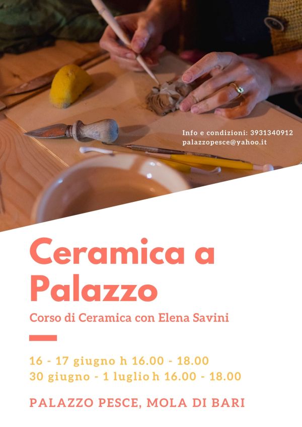 A partire dal 16 giugno, per due weekend, prenderà vita il primo Corso di Ceramica organizzato dall'Atelier delle Arti a Palazzo Pesce a cura della docente Elena Savini. Il corso si rivolge a tutti coloro che vogliano esprimere la propria creatività utilizzando la tecnica artigianale della lavorazione e ceramizzazione dell'argilla. L'obiettivo è apprendere come produrre... Continua a leggere →