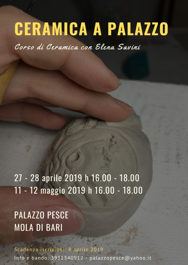 A partire dal 27 aprile, per due weekend, prenderà vita il secondo Corso di Ceramica organizzato dall'Atelier delle Arti a Palazzo Pesce a cura della docente Elena Savini. Il corso si rivolge a tutti coloro che vogliano esprimere la propria creatività utilizzando la tecnica artigianale della lavorazione e ceramizzazione dell'argilla. L'obiettivo è apprendere come produrre un oggetto... Continua a leggere →