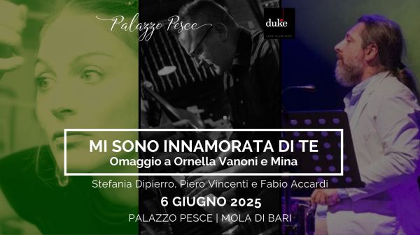 Giovedì 19 giugno 2025 alle ore 21.00 la corte all'aperto di Palazzo Pesce a Mola di Bari, in collaborazione con il Duke Jazz Club di Bari, replica a grande richiesta “Mi sono innamorata di te” insieme a Stefania Dipierro alla voce, Piero Vincenti al piano e Fabio Accardi alla batteria. Il trio darà vita ad una retrospettiva... Continua a leggere →