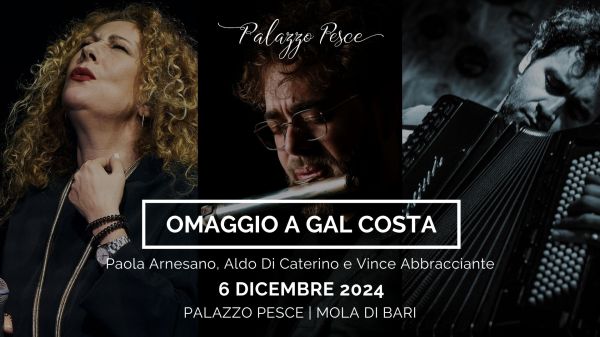Venerdì 6 dicembre 2024 alle ore 21.00 Palazzo Pesce a Mola di Bari presenta “Omaggio a Gal Costa” insieme a Paola Arnesano voce, Aldo Di Caterino flauto e Vince Abbracciante fisarmonica. Il trio ricorda una compianta icona della musica popolare brasiliana e del movimento tropicalista, Gal Costa, attraverso i brani che l’hanno resa e che ha reso celebri attraverso... Continua a leggere →