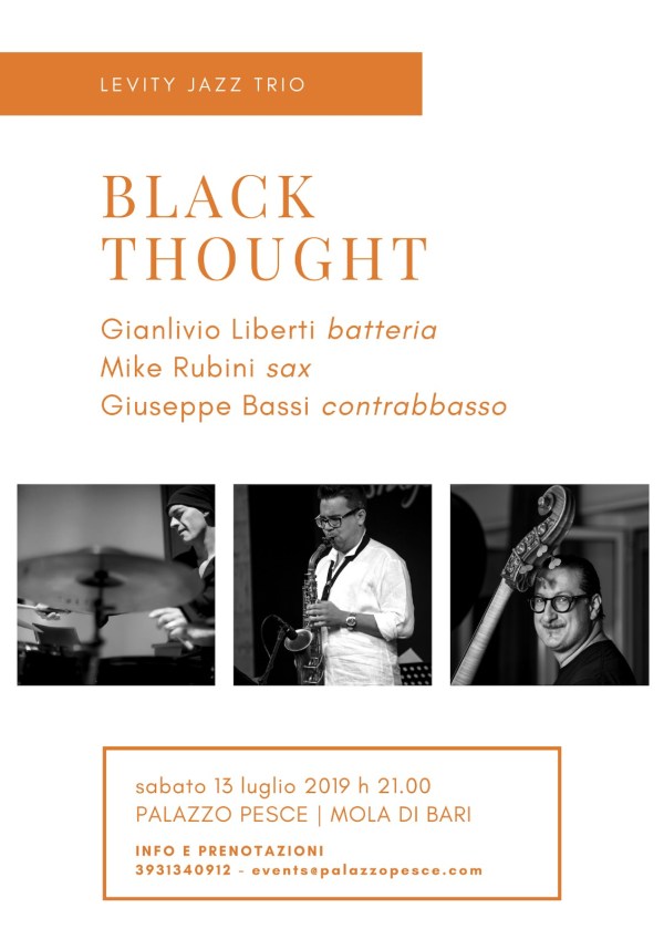 Sabato 13 luglio 2019 alle ore 21.00 a Palazzo Pesce echeggiano le armonie del “Black Thought” insieme al Levity Trio di Gianlivio Liberti, Mike Rubini e Giuseppe Bassi. Un concerto in Puglia che ripercorre le note del primo album del Trio in cui vengono riscritti alcuni celebri brani della tradizione afro-americana. E quel pensiero nero... Continua a leggere →
