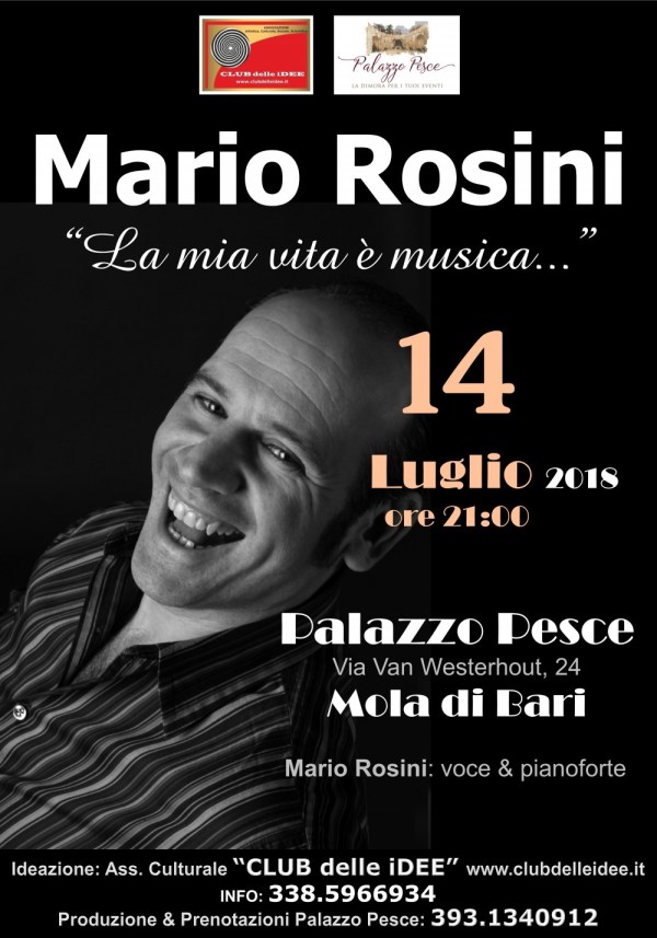 Sabato 14 luglio 2018 alle ore 21.00 la corte di Palazzo Pesce ospita Mario Rosini e il CLUB delle iDEE, uniti in un progetto musicale in giro per prestigiose location e storici teatri in Italia e all’estero e un repertorio che spazia dal pop al funk passando per hip hop, jazz e new age. Artista... Continua a leggere →
