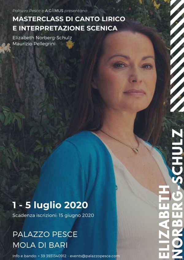 Da mercoledì 1 a domenica 5 luglio 2020 Palazzo Pesce, in collaborazione con l’AGÌMUS, ospita la “Masterclass di Canto lirico e Interpretazione scenica” tenuta dal soprano Elizabeth Norberg-Schulz, docente di canto presso l’università norvegese di Stavanger e visiting professor presso le maggiori università e istituzioni musicali come l’Accademia Filarmonica e il Conservatorio di Santa Cecilia... Continua a leggere →