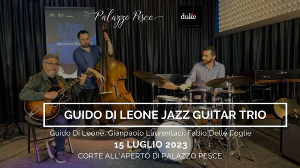 Sabato 15 luglio 2023 alle ore 21.30 la corte all’aperto di Palazzo Pesce presenta il Guido Di Leone jazz Guitar Trio Songbook di Broadway, originals bebop con Guido Di Leone alla chitarra, Giampaolo Laurentaci al contrabbasso e Fabio delle Foglie alla batteria. Un concerto, in collaborazione con il Duke Jazz Club, che propone una accurata... Continua a leggere →